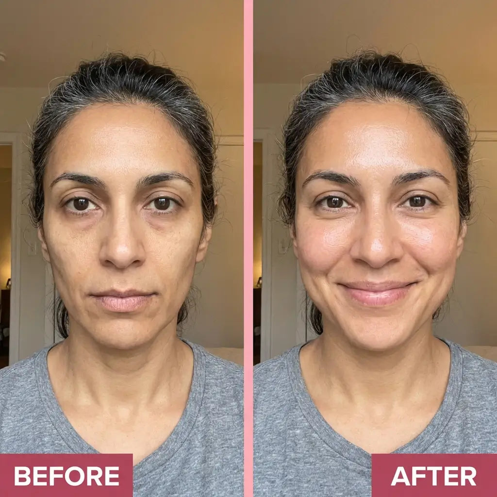 Most women notice their concealer stops creasing by the end of the first week. The under-eye area feels more supported. Makeup sits differently. It is subtle — but it is the first sign the signal is coming back. One woman told us: "Week one, my makeup stopped creasing by noon. That is the first time anything has actually done something in two years."